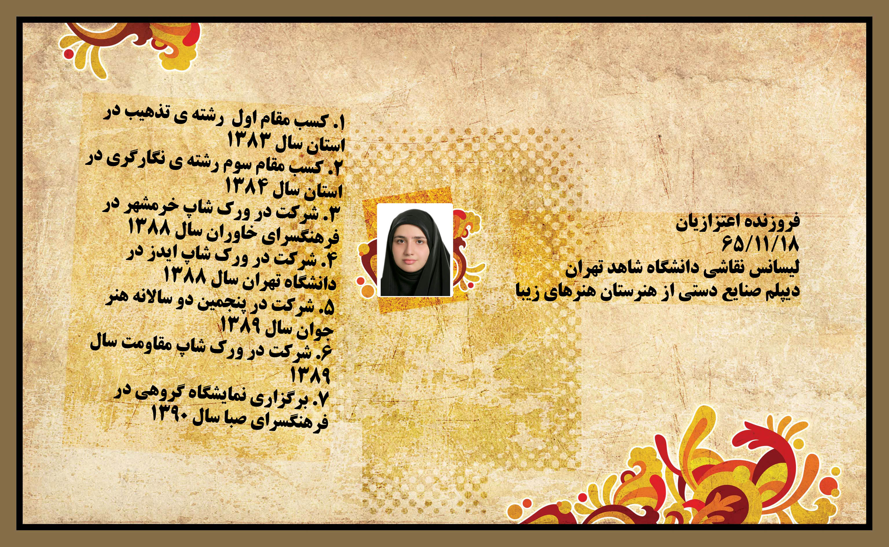 فروزنده اعتزازیان: کارشناسی ارشد نقاشی